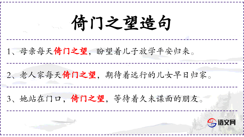 - 倚门之望:倚靠在门边等待,望表示等待的动作。