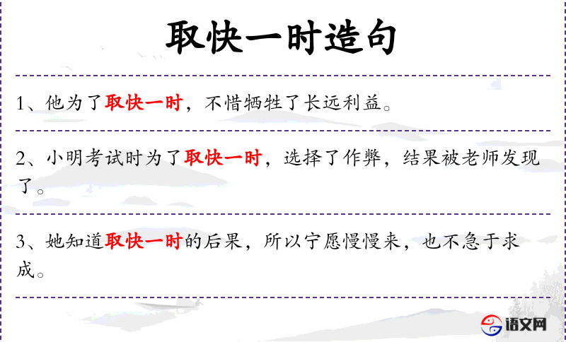 1. 【取快一时】 只图暂时的快乐,不顾其他的利害关系。