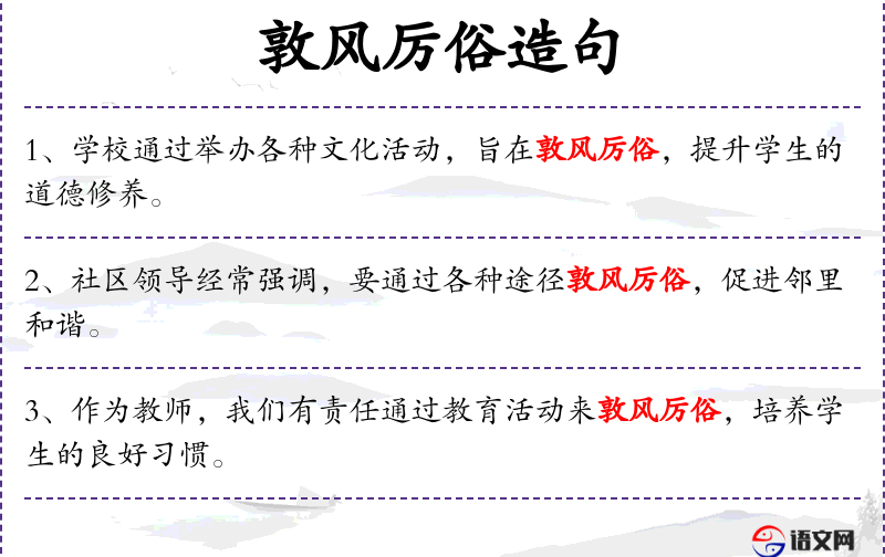 - 宾语:“敦风厉俗的关键”