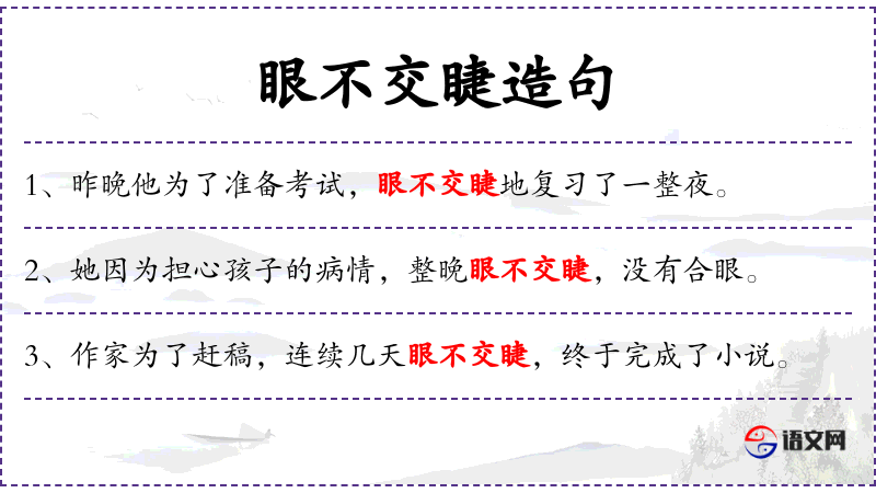 4. 【眼不交睫】 睫:眼睫毛。眼睛一眨也不眨。形容心情不安而长夜不眠