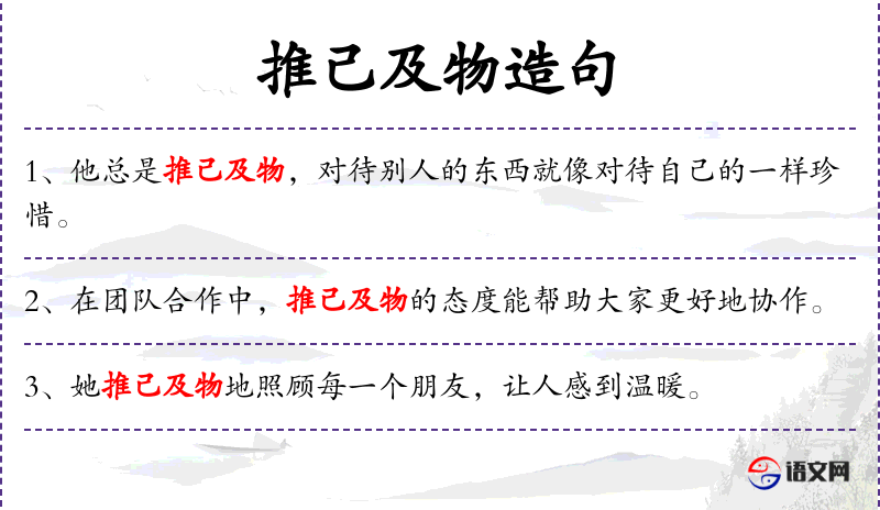 - 推己及物:指以自己的感受去理解或对待他人或事物,体现了同理心和关怀。