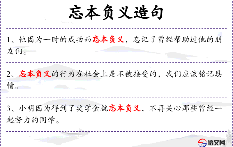 - “忘本负义”是一个**传统文化中的成语,强调了忠诚和感恩的重要性。