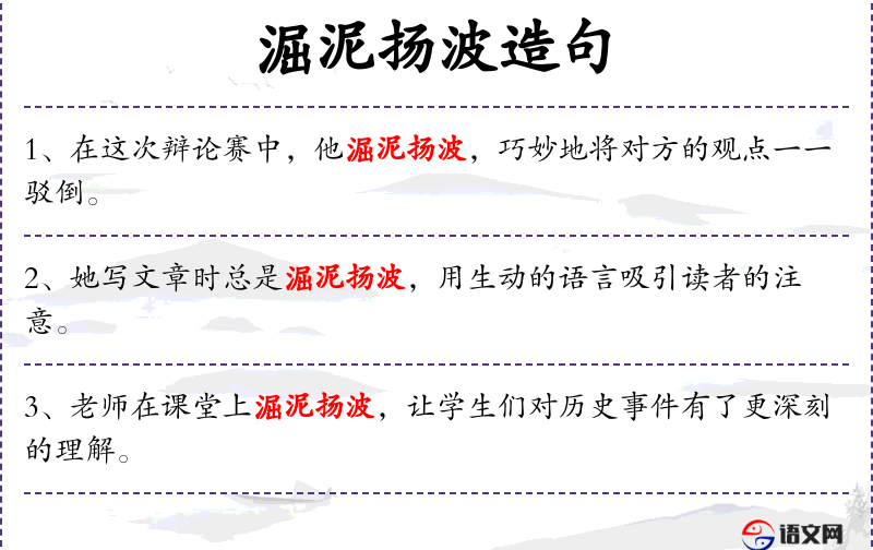 3. 【淈泥扬波】 搅浑泥水,激起波浪。比喻没有主意,随俗沉浮。