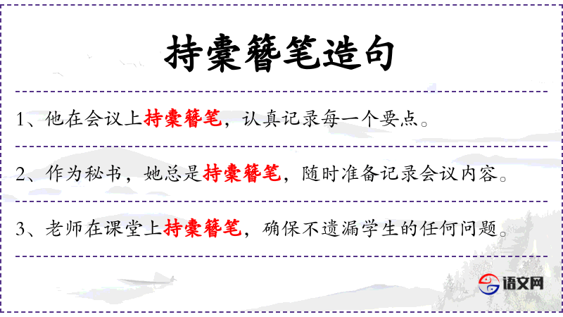 句子:“她在写作研讨会上持橐簪笔,记录下每位作家的建议。”