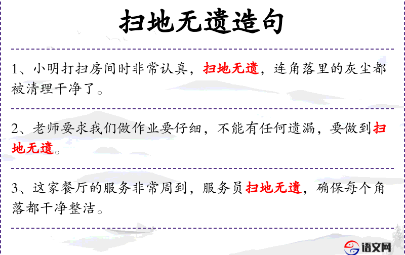 - 考虑得扫地无遗:成语,意为考虑得非常周到,没有遗漏。