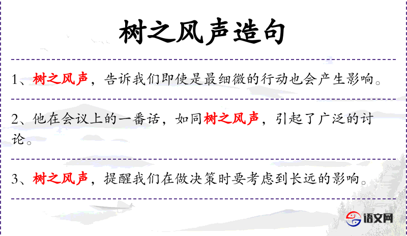 1. 【树之风声】 - 树:建立;风:教化;声:风声,风气。建立好的教化,宣扬好的风气。