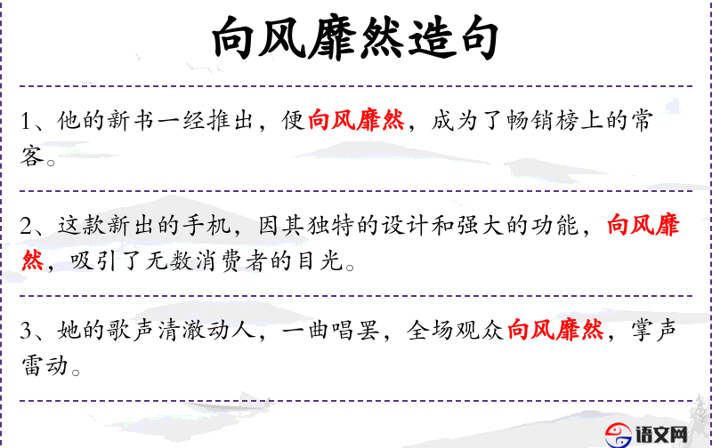 1. 【向风靡然】 向风:闻风仰慕;靡然:倒伏的样子。形容人倾心向往。