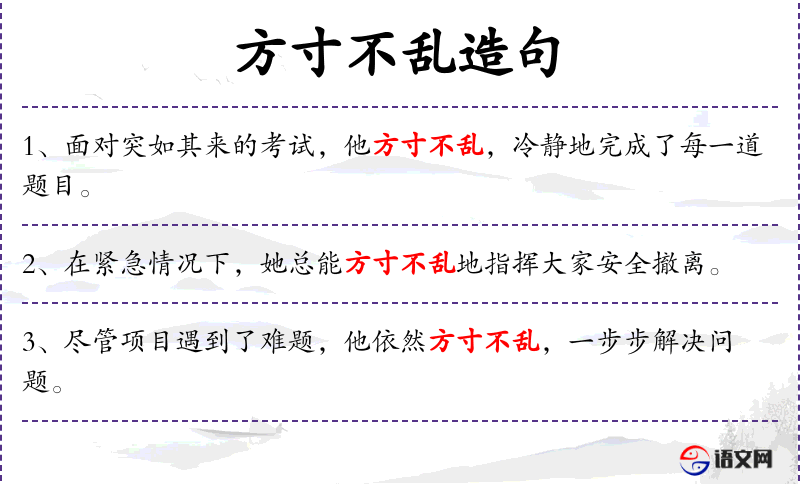 - 方寸不乱:成语,表示在紧张或困难的情况下保持冷静。