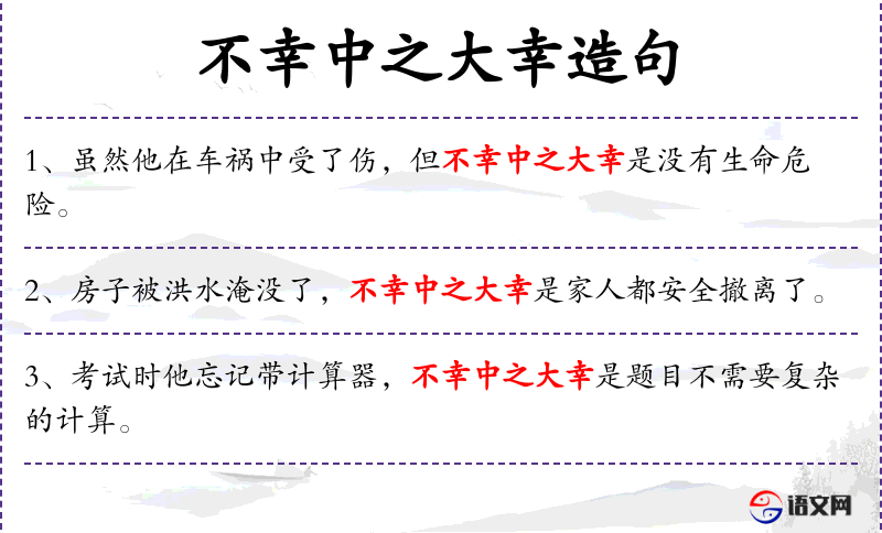 “不幸中之大幸”是一个常用的成语,反映了**文化中对逆境中寻找希望的积极态度。这个成语在日常生活中经常被用来安慰他人或自我安慰。