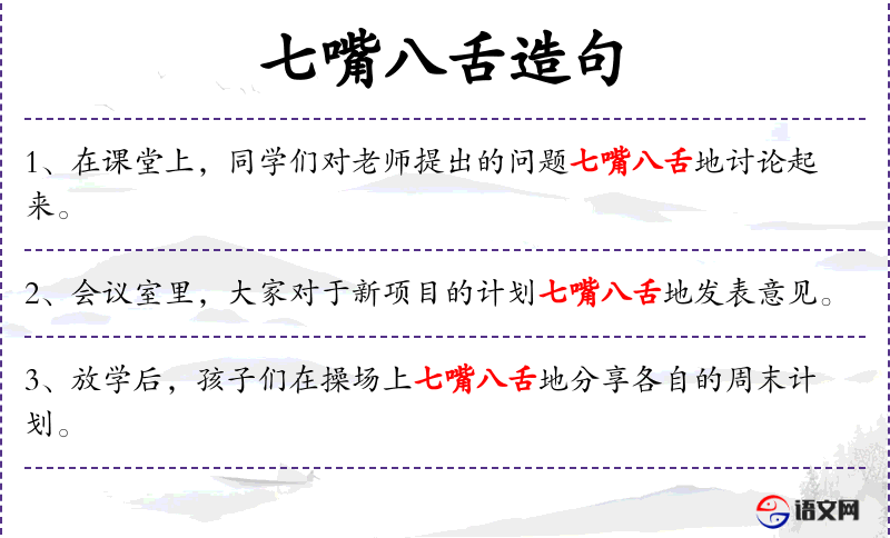 “七嘴八舌”这个成语在**文化中常用来形容人多口杂,议论纷纷的场景。这种表达方式体现了中文成语的生动性和形象性。