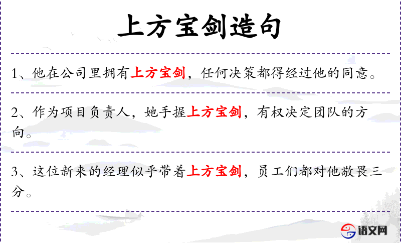 1. 【上方宝剑】 尚方署特制的皇帝御用的宝剑。古代天子派大臣处理重大案件时,常赐以上方宝剑,表示授于全权,可以先斩后奏。现用以比喻来自上级的口头指示或书面文件。