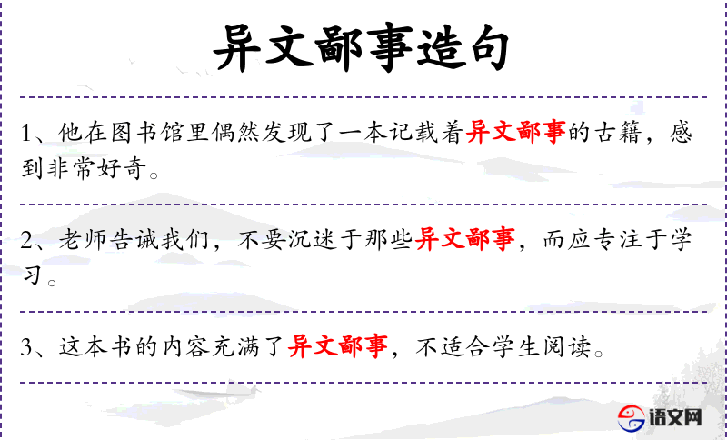 - 异文鄙事:指奇特、不寻常或低俗、不雅的文学作品。