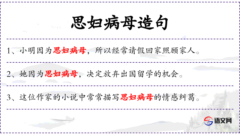 - 状语:因为思妇病母