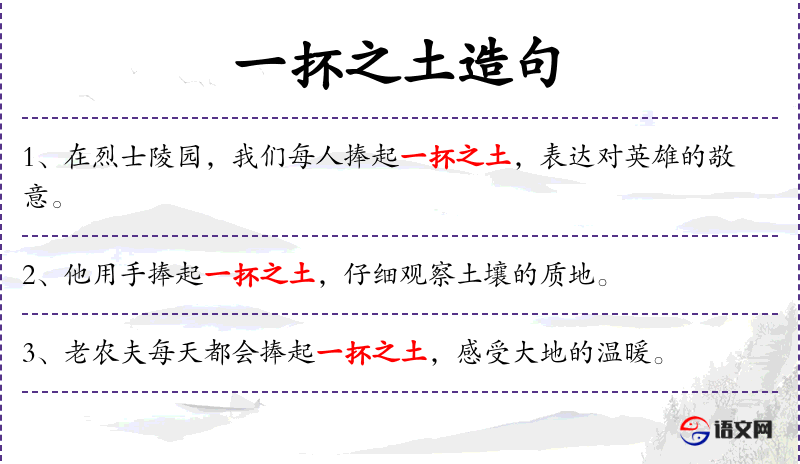 - 宾语:一抔之土、一个小雕塑、泥土的美