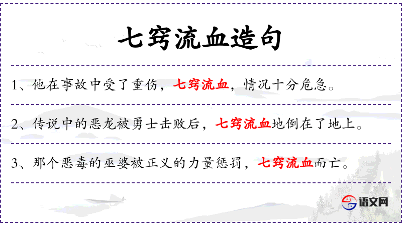 句子中提到的“七窍流血”在**文化中常用来形容极度受伤或死亡的状态,源自中医理论中的人体七窍(眼、耳、鼻、口)。
