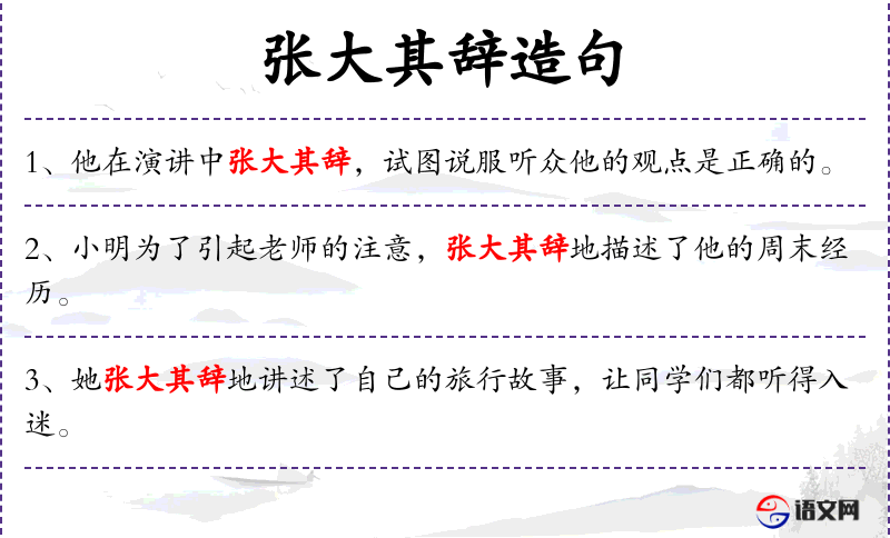 她张大其辞地讲述了自己的旅行故事,让同学们都听得入迷。
