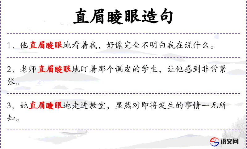 2. 【直眉睖眼】 - 竖眉瞪眼。