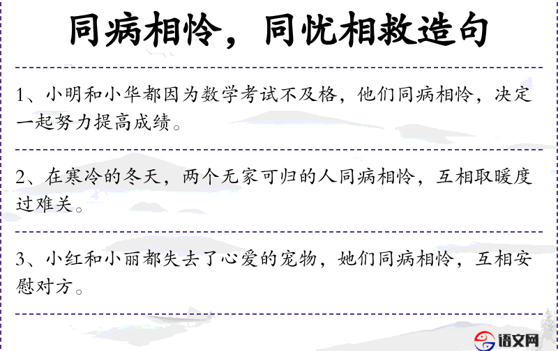 - 相关成语:同病相怜是一个常用的成语,强调在困难时期人们应该互相支持。