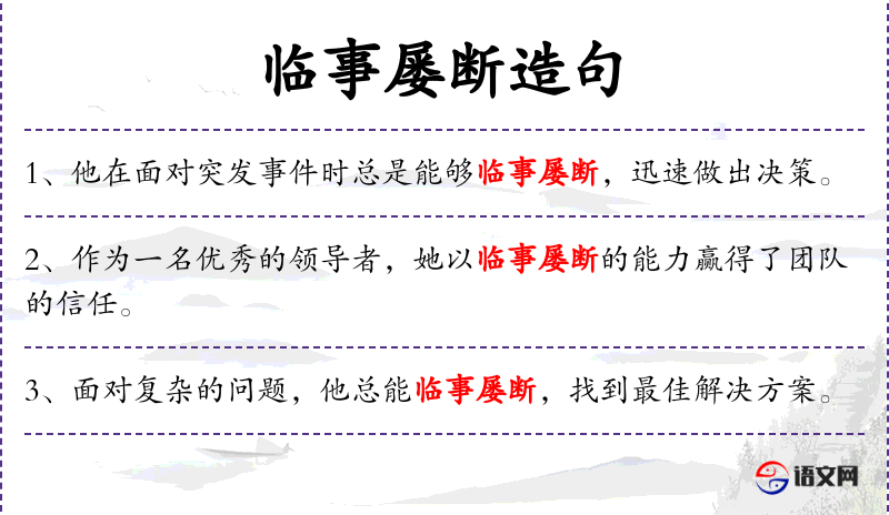 - 临事屡断:指在处理事情时经常能够果断决策。