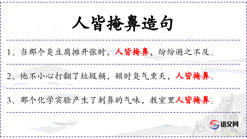 1. 【人皆掩鼻】 人人都捂住鼻子。本指秽气难闻,后指行为丑恶,谁都不愿接近。