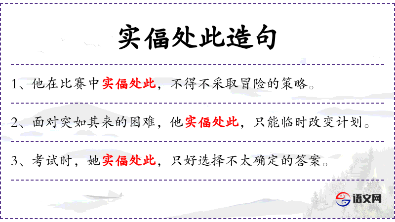 2. 【实偪处此】 本意为迫于形势而占有此地。后用以表示为情势所迫,不得不如此。