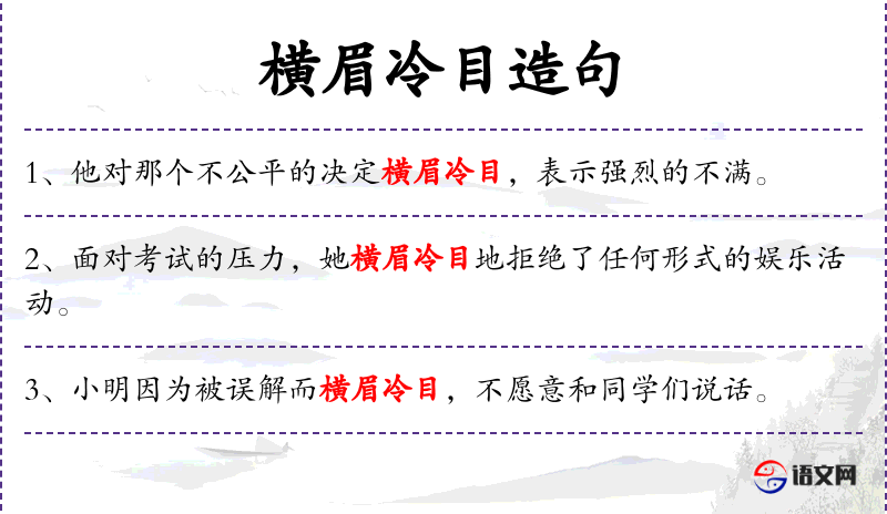 1. 【横眉冷目】 - 愤怒、轻蔑的样子。同“横眉冷眼”。
