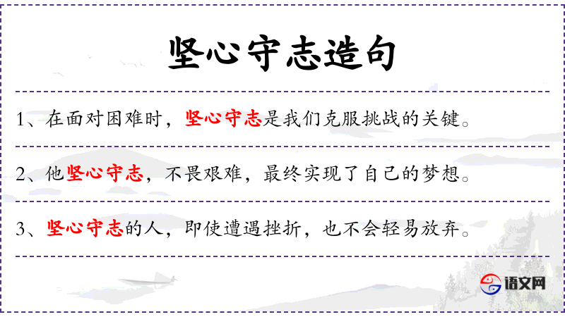 - 坚心守志:形容词短语,意为坚定不移地保持自己的志向和决心。
