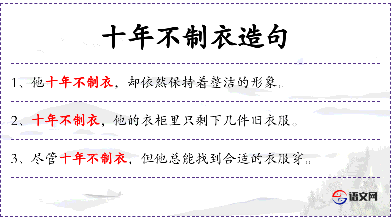 句子:“十年不制衣,他的衣服都是由家人帮忙制作的。”
