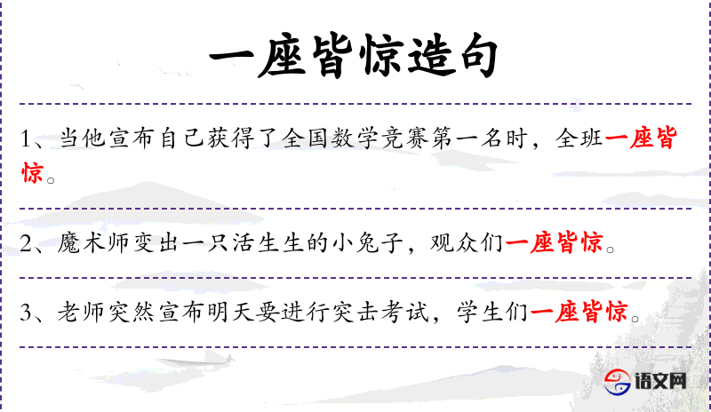 - 成语:一座皆惊,源自古代文化,形容场面或引起广泛震惊。