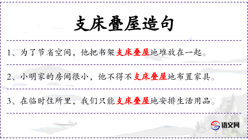 - 成语:“支床叠屋”是一个**成语,用来形容物品堆叠得很高,这里用来形象地描述展品的陈列方式。