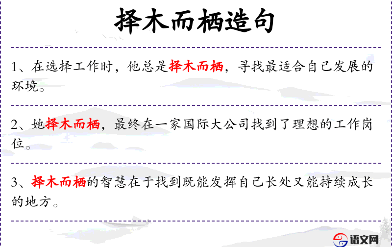 - 文化背景:在**文化中,“择木而栖”是一个常用的成语,强调选择的重要性。