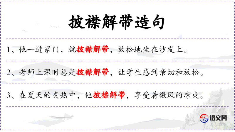 “披襟解带”这个成语蕴含了传统文化中对休息和放松的描述。在文化中,解开衣襟和放松腰带是一种传统的放松方式,象征着从紧张状态中解脱出来。