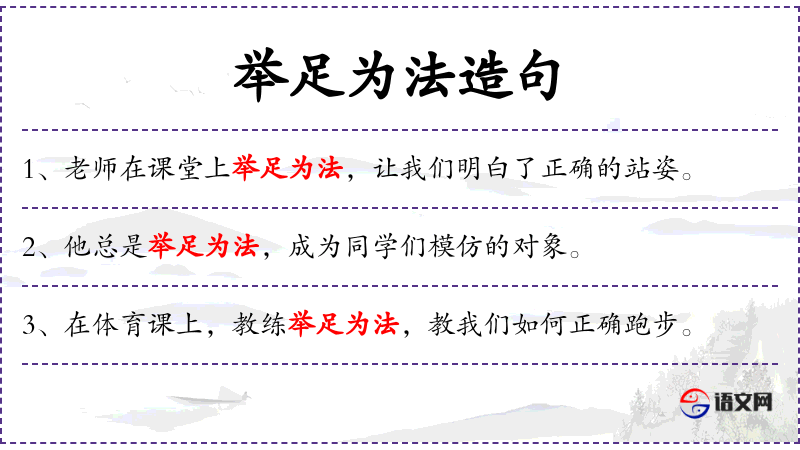 - 举足为法:这是一个成语,意思是采取行动作为榜样。