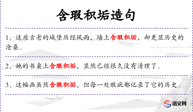 - 含瑕积垢:指建筑物表面有瑕疵和污垢,比喻历史建筑经历了岁月的痕迹。