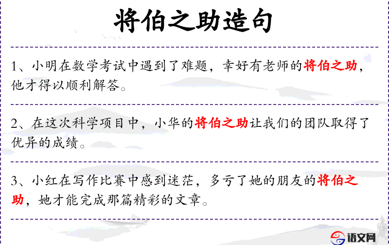 - “将伯之助”是一个成语,意为得到长辈或有经验者的帮助。
