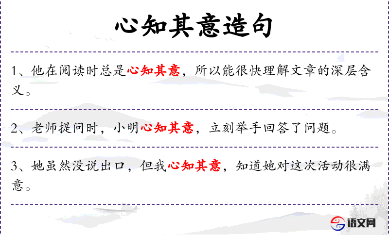 1. 【心知其意】 意:意义。心中领会了文章的主旨或技艺的要领。