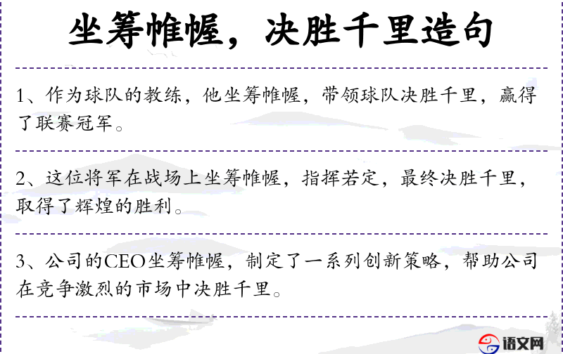 - 谓语:坐筹帷幄、深思熟虑、决胜千里、赢得