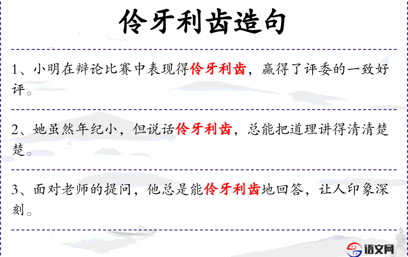 - 伶牙利齿:形容人口齿伶俐,能言善辩。