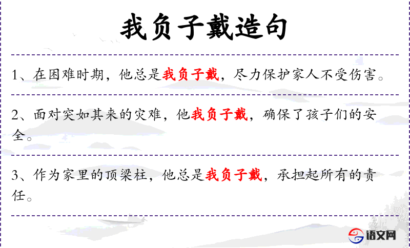 句子:“作为家里的顶梁柱,他总是我负子戴,承担起所有的责任。”