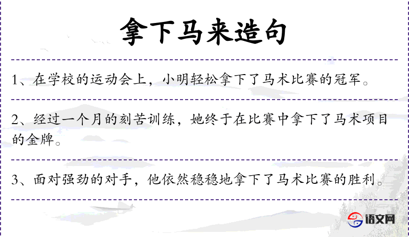 句子:“小华在马术比赛中表现出色,成功拿下了马来。”