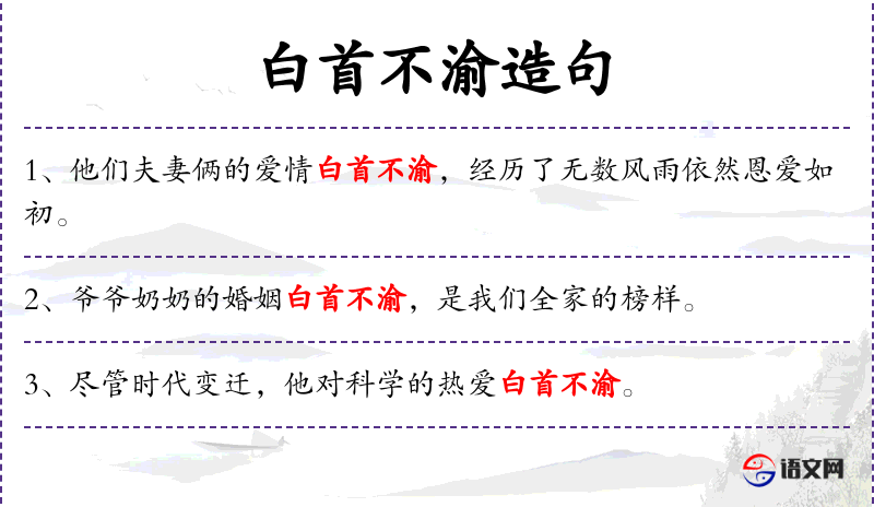 6. 【白首不渝】 渝:改变。白头到老也不变。形容人一生忠诚、坚定。