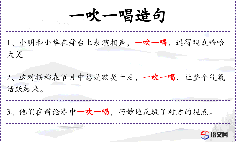 - 一吹一唱:成语,形容表演生动,有声有色。