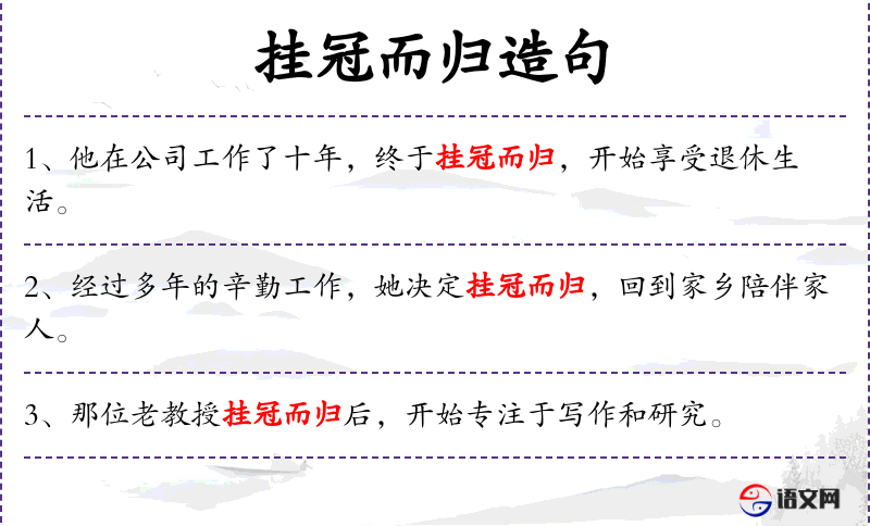 - 挂冠而归:这个成语源自**古代,官员辞官归隐时,会挂起官帽,表示不再担任官职。这反映了古代文人对官场生活的厌倦和对自由生活的向往。