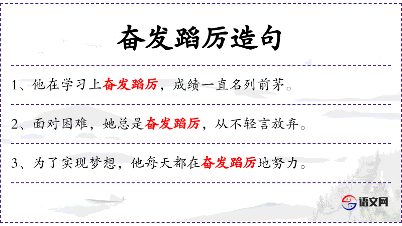 - 奋发蹈厉:成语,形容非常努力和勤奋。