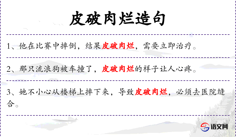 3. 【皮破肉烂】 - 形容伤势很重。