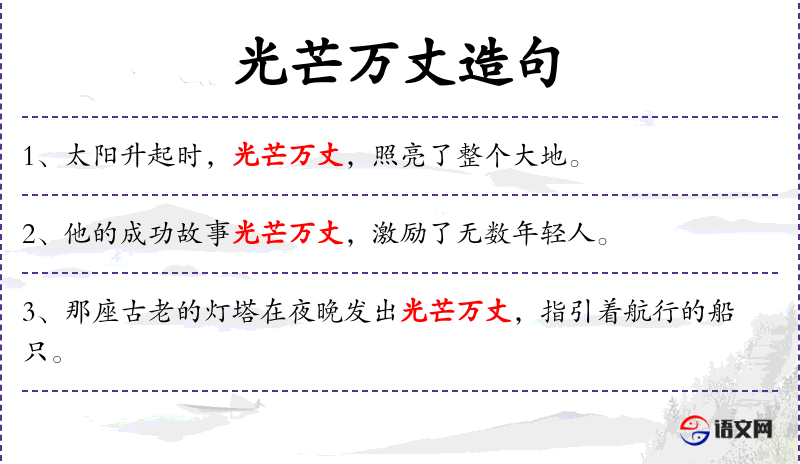 - 光芒万丈:形容非常明亮或辉煌,常用来比喻人的成就或影响力。