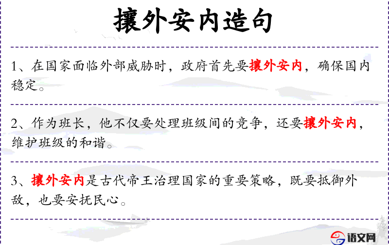“攘外安内”是一个成语,源自**古代的军事策略,强调在战争中既要抵御外敌,也要稳定内部。在现代商业环境中,这个成语被用来描述管理层在竞争中需要采取的双重策略。