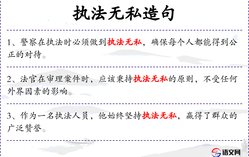 - 执法无私:执行法律时不偏不倚,公正无私。