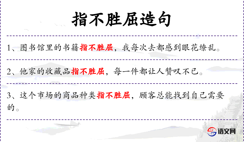 - “指不胜屈”是一个成语,源自古代文学,用于形容数量多到无法一一列举。