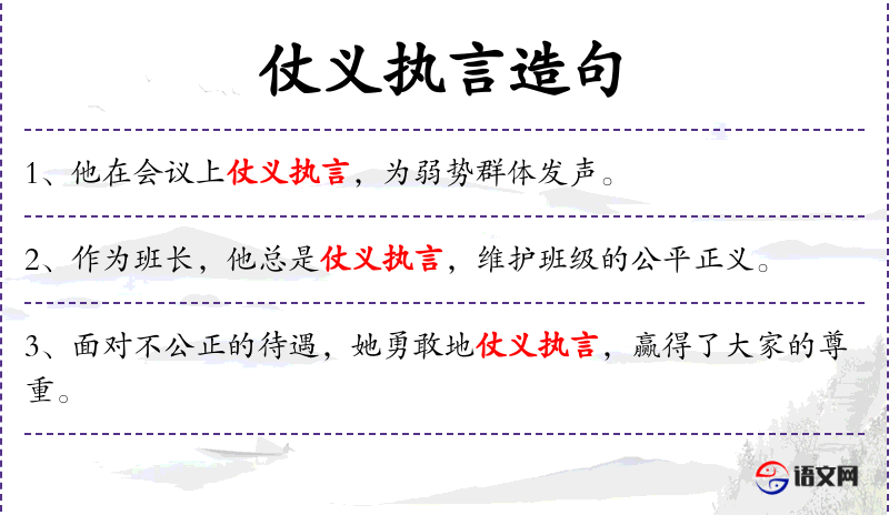- 仗义执言:勇敢地说出正义的话,不畏强权。